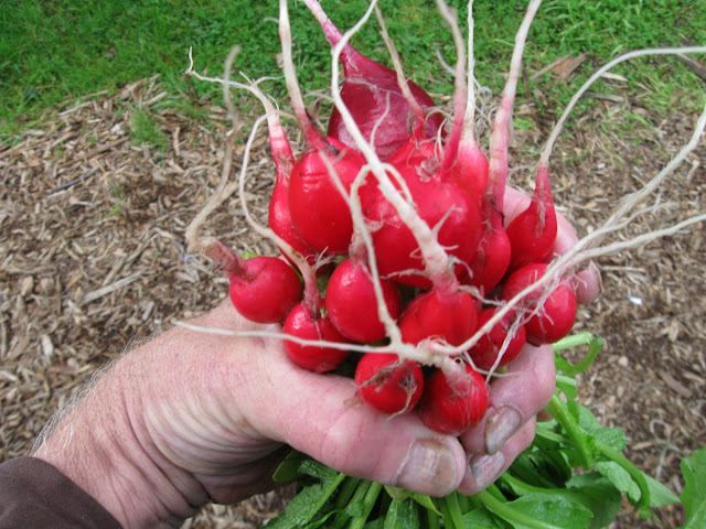 | Steve, holding a bundle of radishes at Marra Farm |